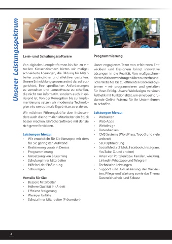 • Schuungen • Support und Aktualisierung der Websei-